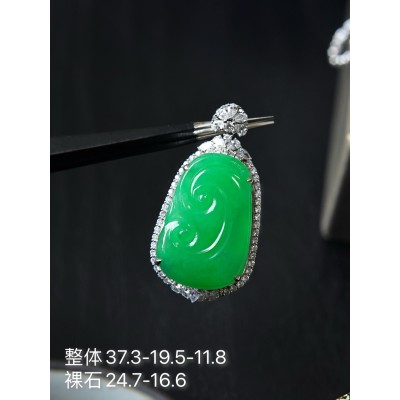 Pendentif émeraude, or 18 carats avec pendentif rui vert, total: 37.3-19.5-11.8, nude stone: 24.7-16.6