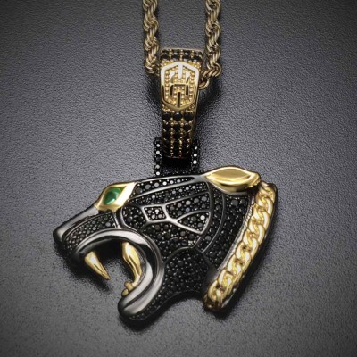 Helloice Pendentif tête de panthère noir glacé en or noir